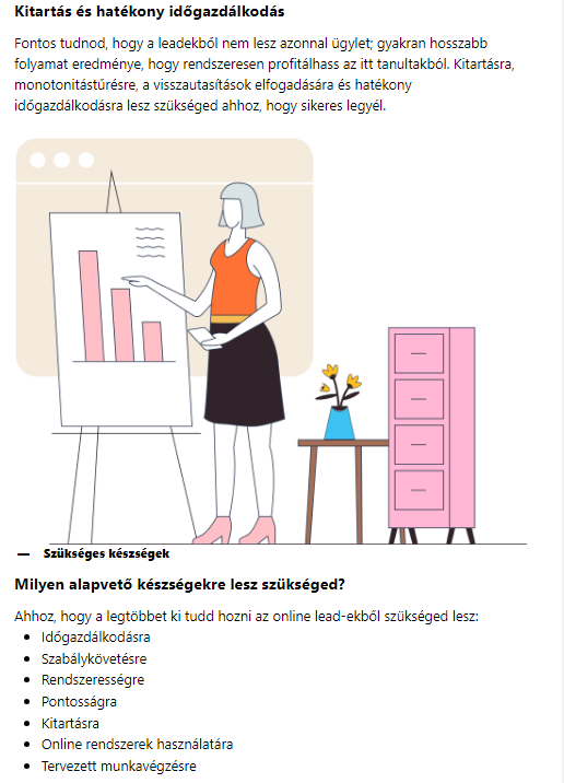Az eredményes munkavégzéshez szükséges készségek a képzés során kerülnek ismertetésre. Ezek nélkülözhetetlenek a határidők betartásához és a sikeres ügyfélkövetéshez.