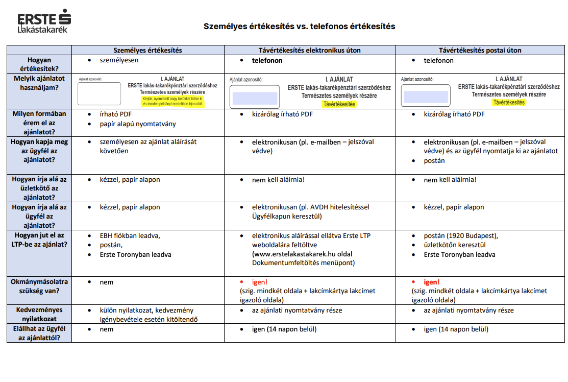 A telefonos beszélgetés során minden esetben kerüljön szóba a távértékesítési eljárás és annak főbb elemei.