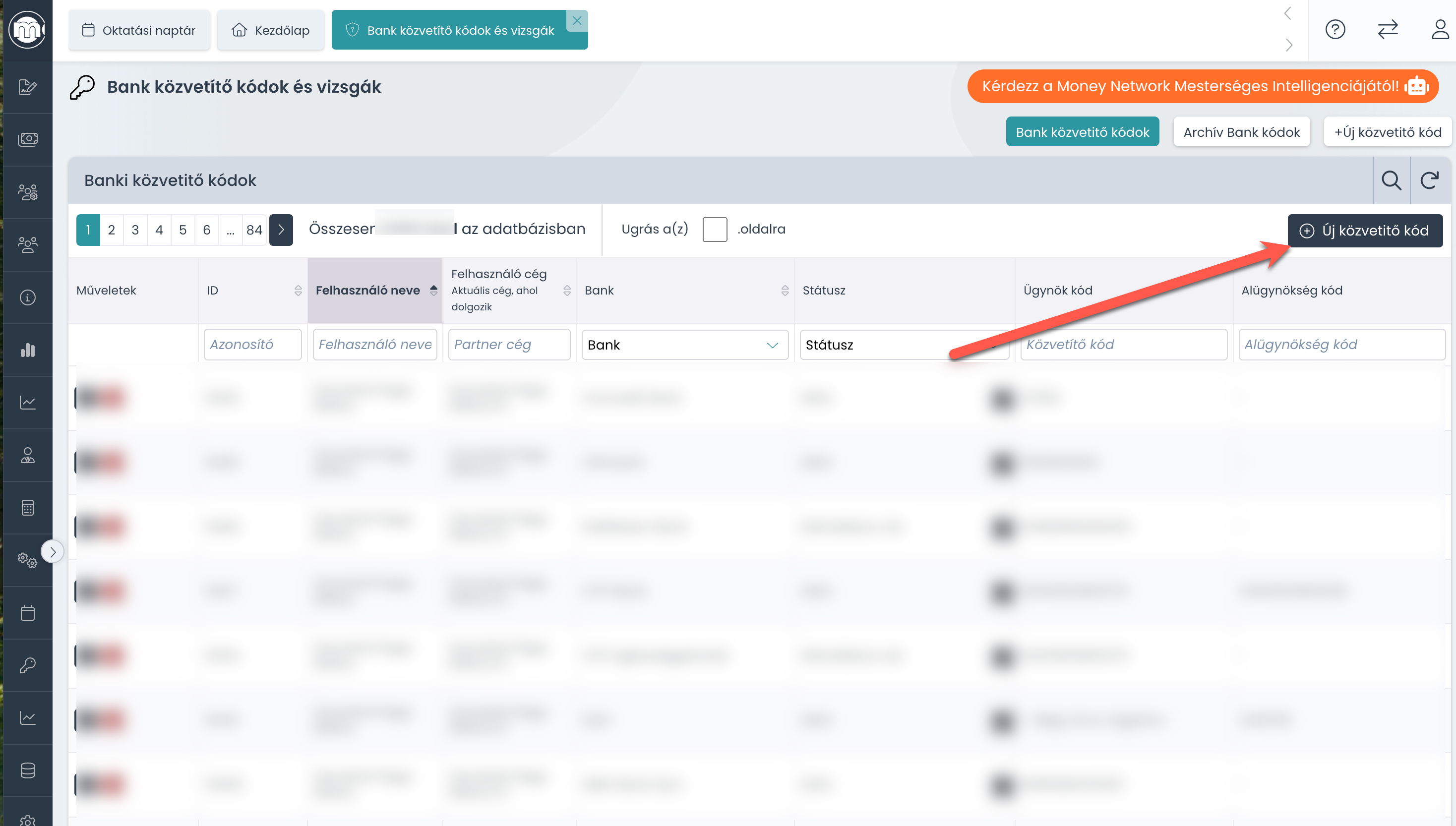 Egy új banki kódigénylést minden esetben az adminisztrációs rendszer kezdőlapján található "Bank közvetítői kódok és vizsgák" csempére kattintva tudod elindítani.
