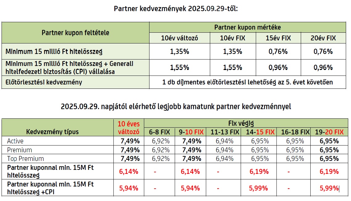 Az egyedi kedvezmény és a partner kupon kedvezmény összevonható, így a meglévő kupon kedvezményen felül egyedi kedvezmény is kérhető, amennyiben a hitel paraméterei megfelelnek a meghatározott feltételeknek.