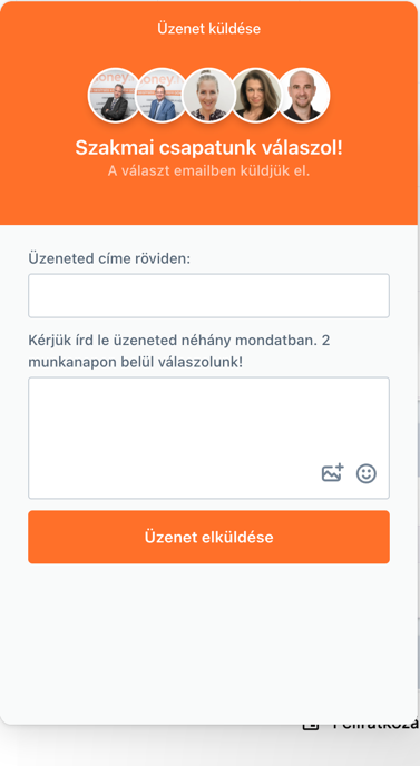 - A doboz alján kattints a gombra és írd le kérdésed.
