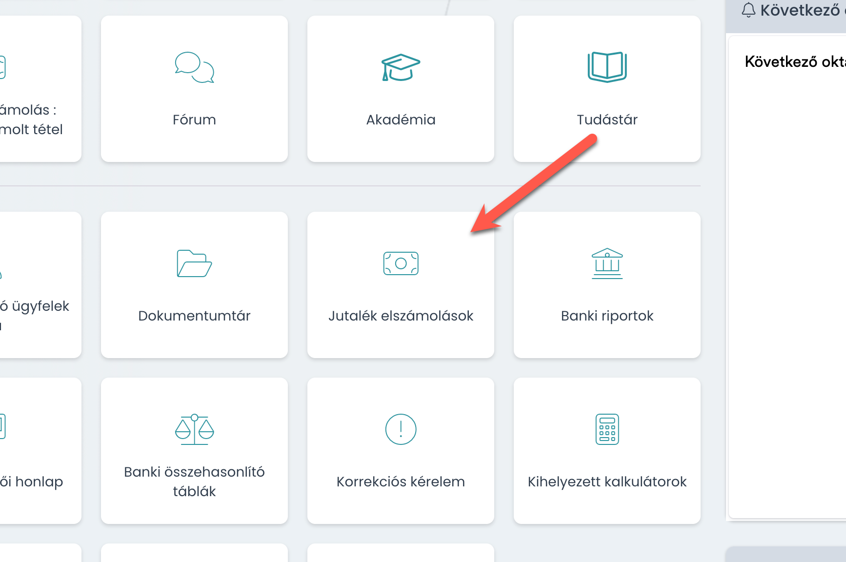 Miután elkészítettük számodra az elmúlt havi közvetített tételeidet tartalmazó jutalék elszámolást, erről értesítő emailt fogunk küldeni és miután belépsz az admin felületre, a Jutalék elszámolás csempére kattintva tudod elkezdeni a folyamatot.