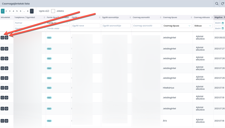 A felugró ablakban a sor elején látható „plusz” ikonra kattintva tudod beszúrni a hivatkozást, a szem ikonra kattintva pedig az adott csomagot új ablakban tudod megnyitni.