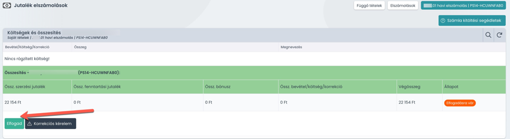 5. LÉPÉS – Elszámolás elfogadása és számlázás