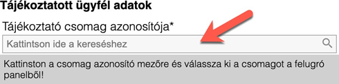 - A kapcsolódó tájékoztató csomag azonosítójának megadása (kereső segítségével)