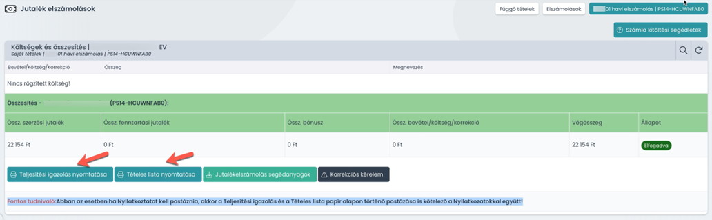 Elfogadást követően nyomtatható ki a Teljesítési igazolás és a tételes lista is. Ezeket a dokumentumokat nem kell elküldened postai úton, saját részre azonban felhasználhatók.
